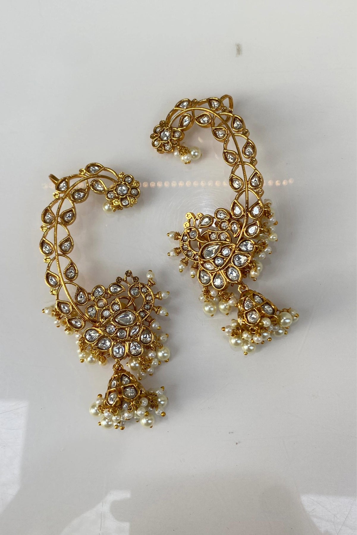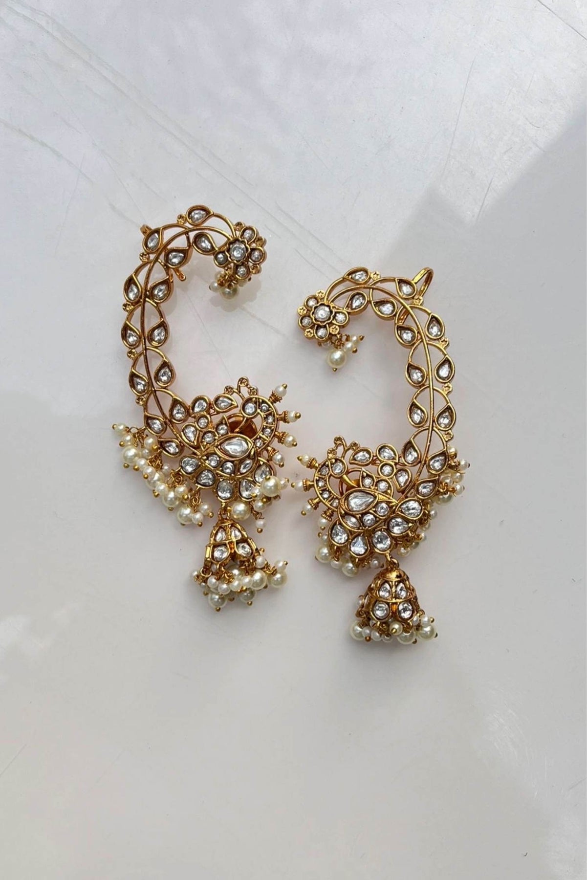 Damyanti Earrings are exclusive beauties. They are intricately crafted by expert artisans. They look splendid and regal on traditional outfits. Also this beauty can be worn with or without ear cuffs.
