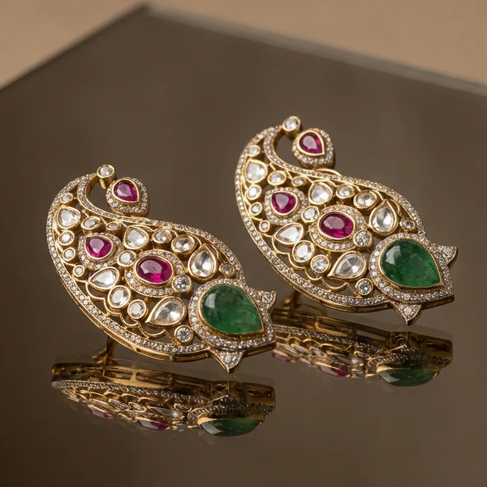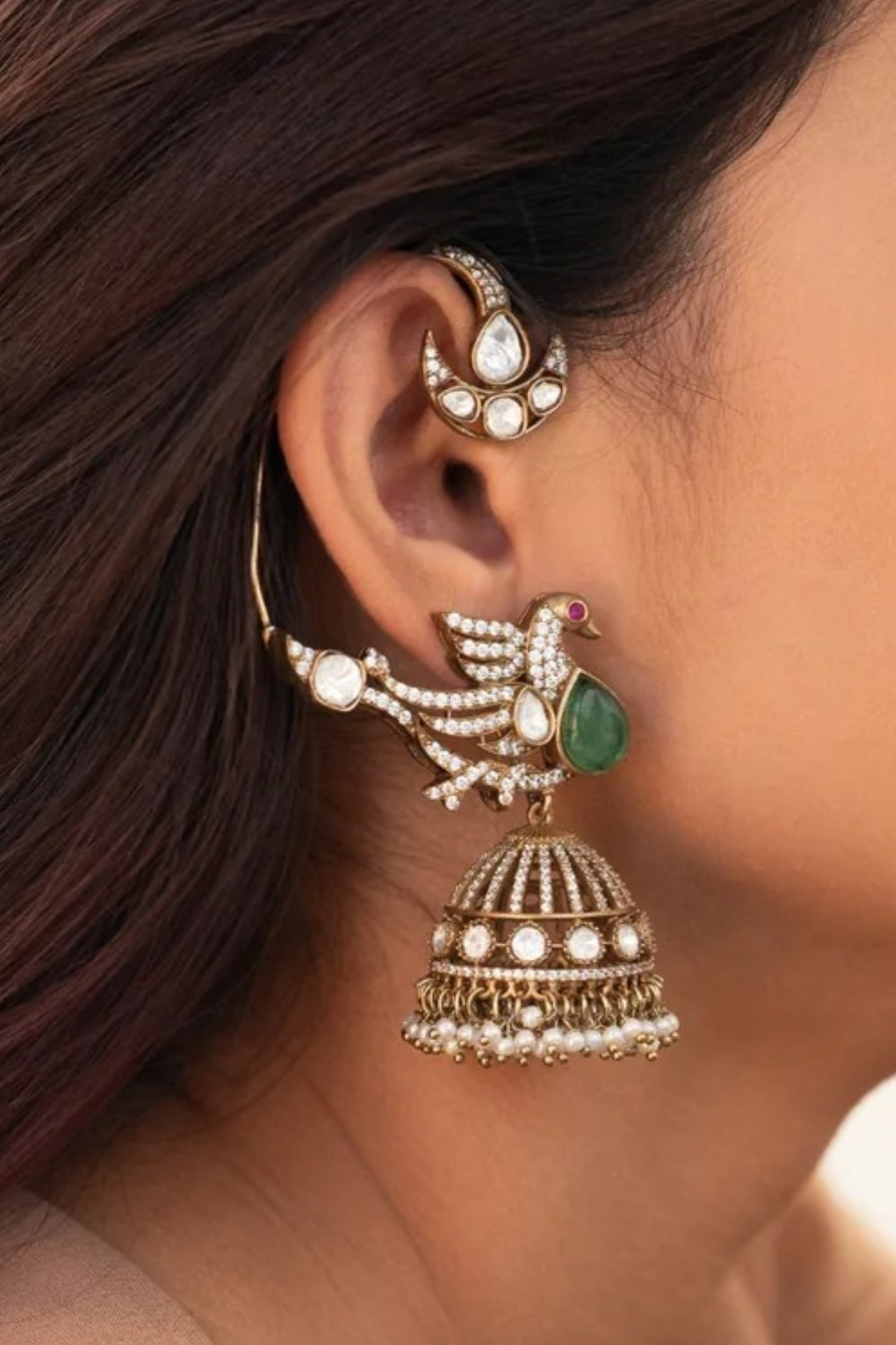 Peacock Polki Earcuff Earrings