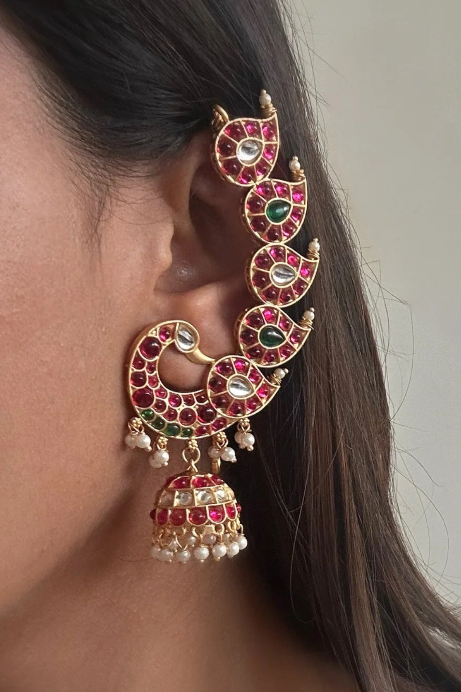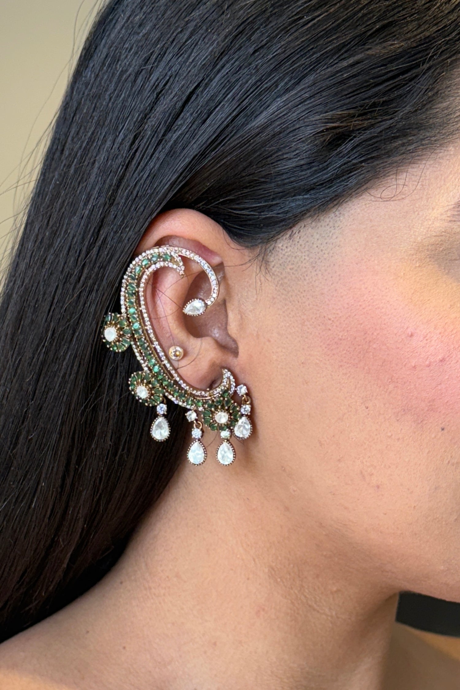 Kamaksi Kemp Stone Earcuff Jhumkas