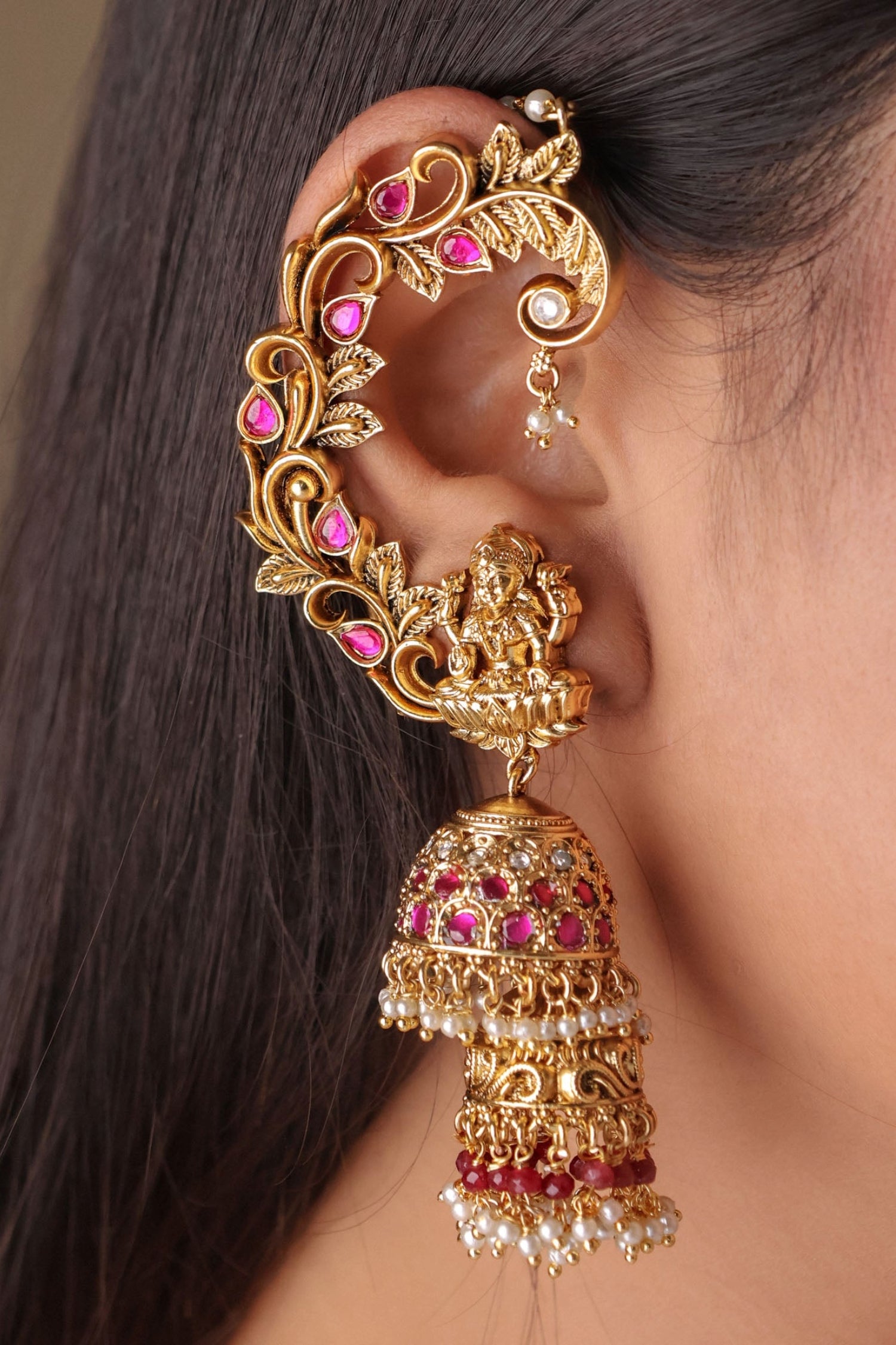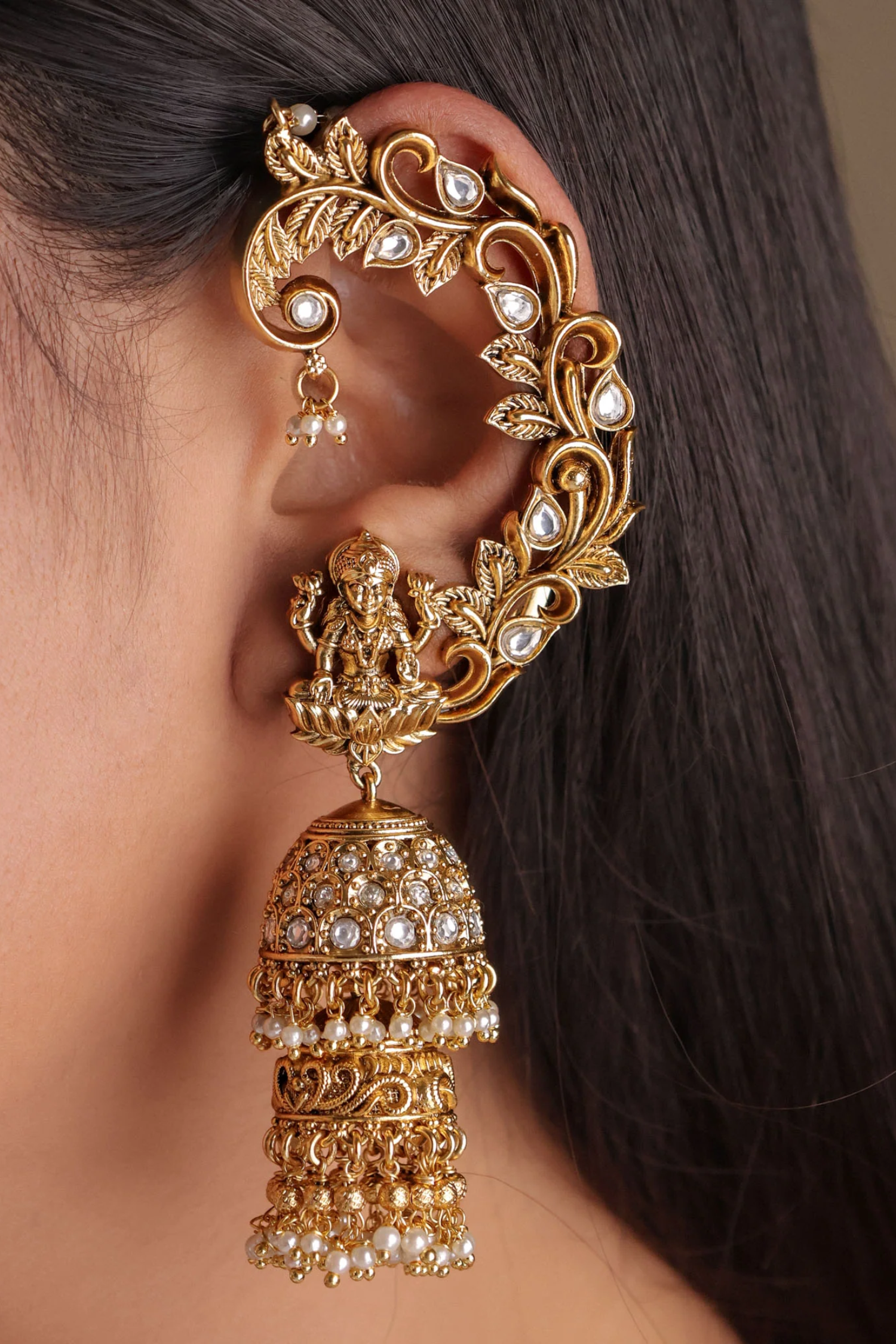 Reevya Gold Plated Earcuff Jhumkas