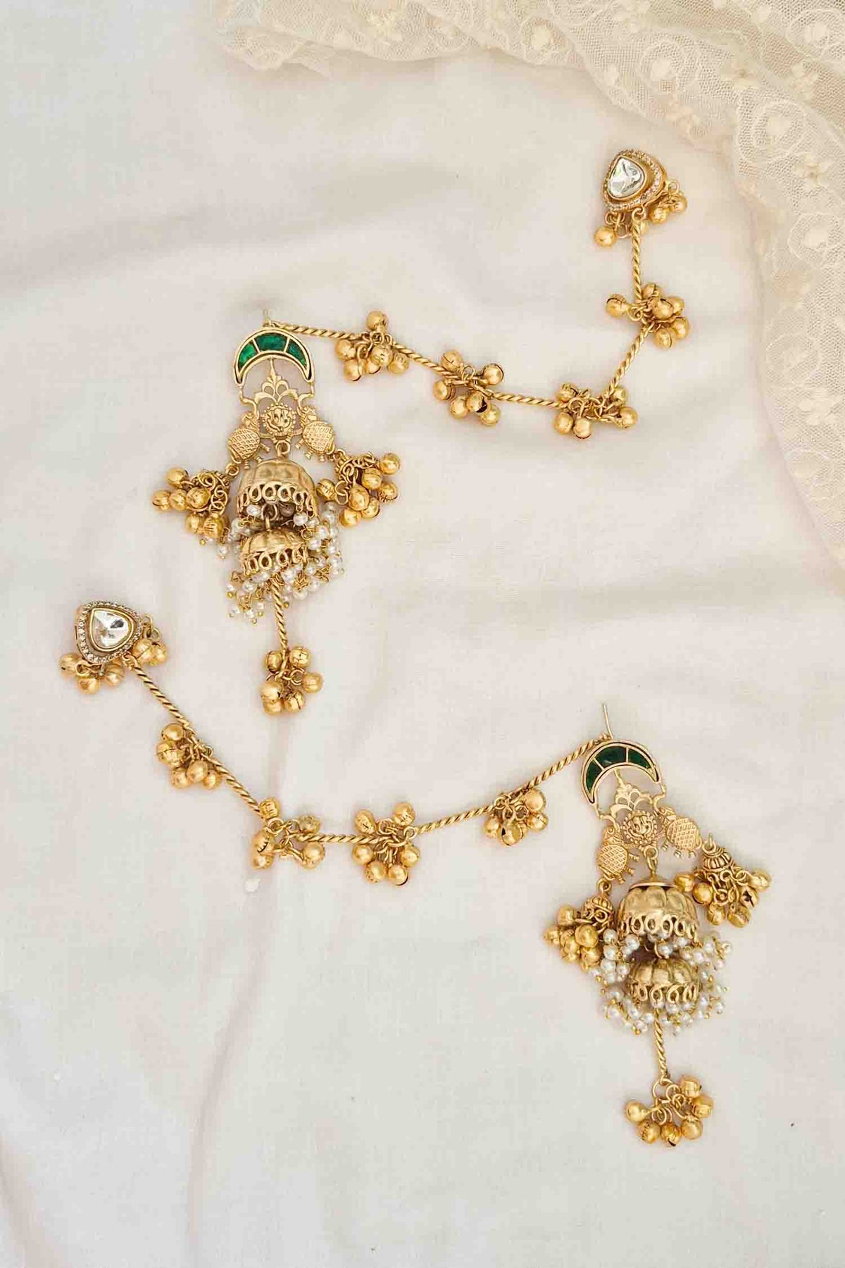 Jaya is a handmade beauty designed and crafted impeccably. Adorned with kemp pachi kundan, pearls and ghungroos - they are a true showstopper.