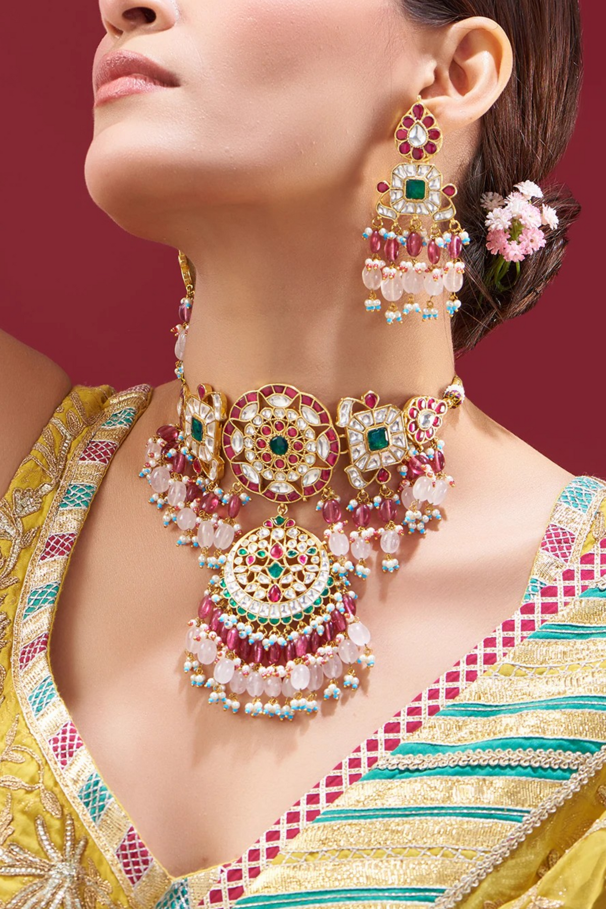 Noorvi Pachi Kundan Set